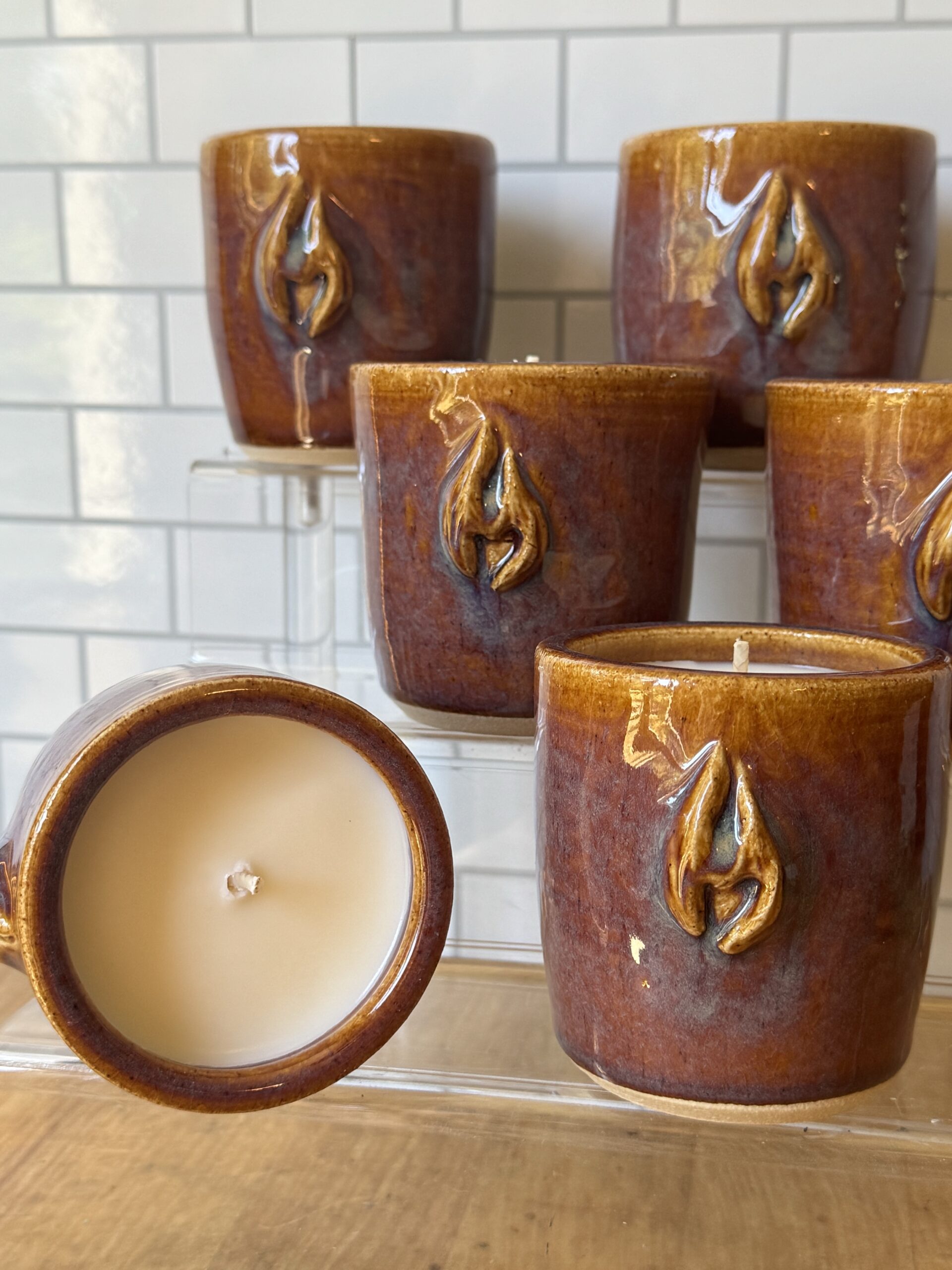 Gnefknacks! Handmade ceramics for everyday life. Thrown on the wheel by Alex, hand painted and carved by Kay, each piece is unique in design but equal in quality and care. They create fun, funky, functional pieces. Exactly why they make such a great fit for our candles!